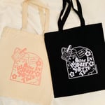 Please be mindful that all tote bags are handmade by me and there may be slight imperfections due to the handmade nature of the product. the product is made to order and current production time is one week or less.